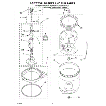 Inner tub basket holds clothing during wash cycles. Replace if cracked, rusty, or broken. Installs in center of washer between outer tub and agitator.