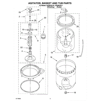 Inner tub basket holds clothing during wash cycles. Replace if cracked, rusty, or broken. Installs in center of washer between outer tub and agitator.