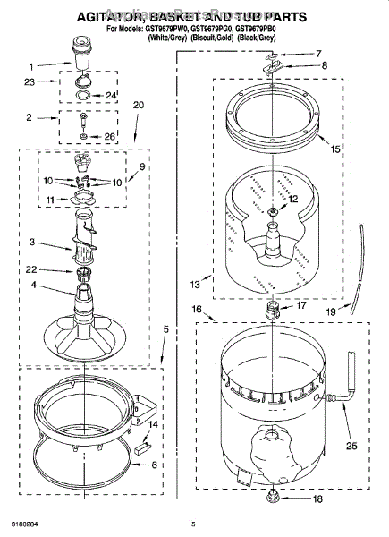 The Complete Agitator Assembly is an OEM part for Whirlpool washing machines. This assembly includes the central vertical agitator component along with the retainer ring. Together they are responsible for the agitation and rubbing motions that work to remove soils and stains from clothing during wash cycles. Causes of a bad agitator assembly can include wear and tear leading to wobbly or loose motions, cracks in plastic components from repeated impacts, or corrosion of metal components. Symptoms of a bad complete agitator assembly include: