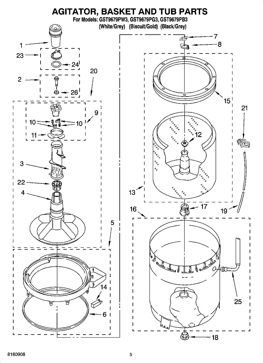 Parts for Whirlpool GST9679PB3: 03 - Agitator, Basket And Tub Parts