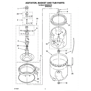 Inner tub basket holds clothing during wash cycles. Replace if cracked, rusty, or broken. Installs in center of washer between outer tub and agitator.