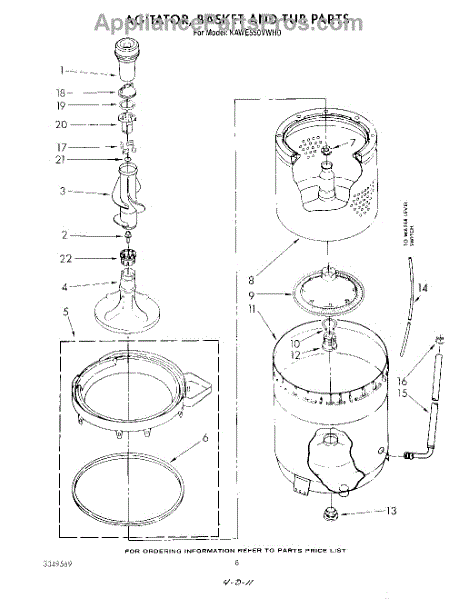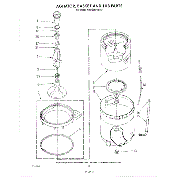 Inner tub basket holds clothing during wash cycles. Replace if cracked, rusty, or broken. Installs in center of washer between outer tub and agitator.