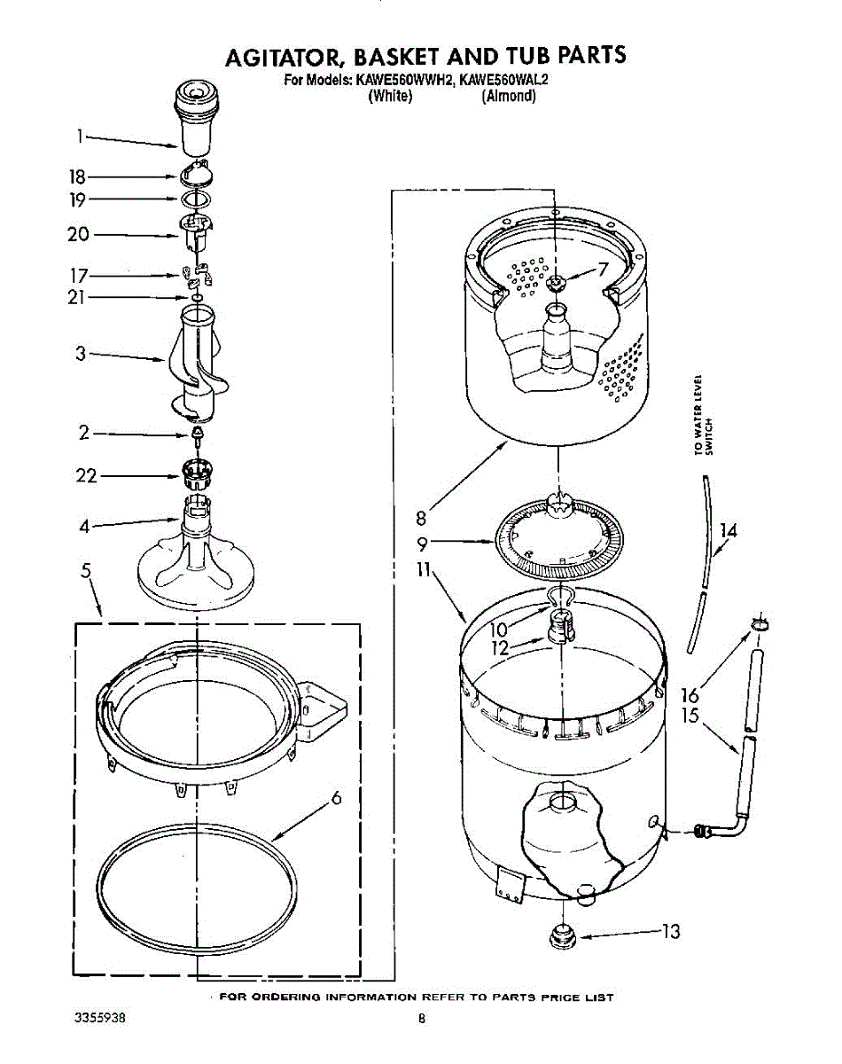 Parts for Kitchenaid KAWE560WAL2: 06 - Agitator, Basket And Tub Parts