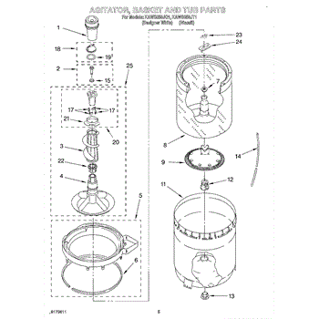 Inner tub basket holds clothing during wash cycles. Replace if cracked, rusty, or broken. Installs in center of washer between outer tub and agitator.