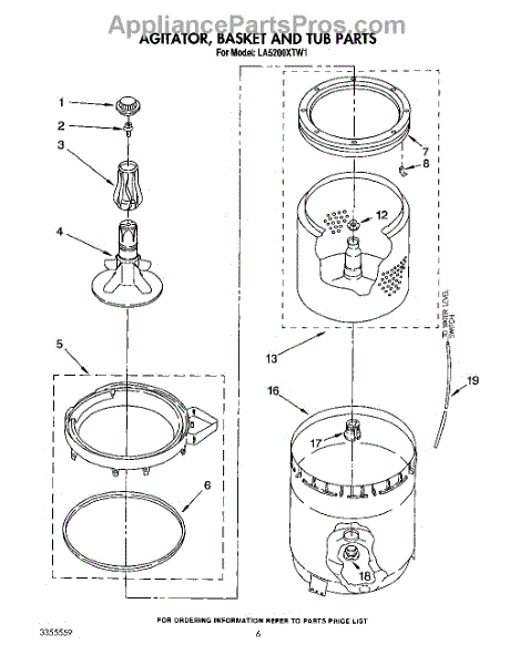 Parts for Whirlpool LA5200XTW1: 05 - Agitator, Basket And Tub Parts
