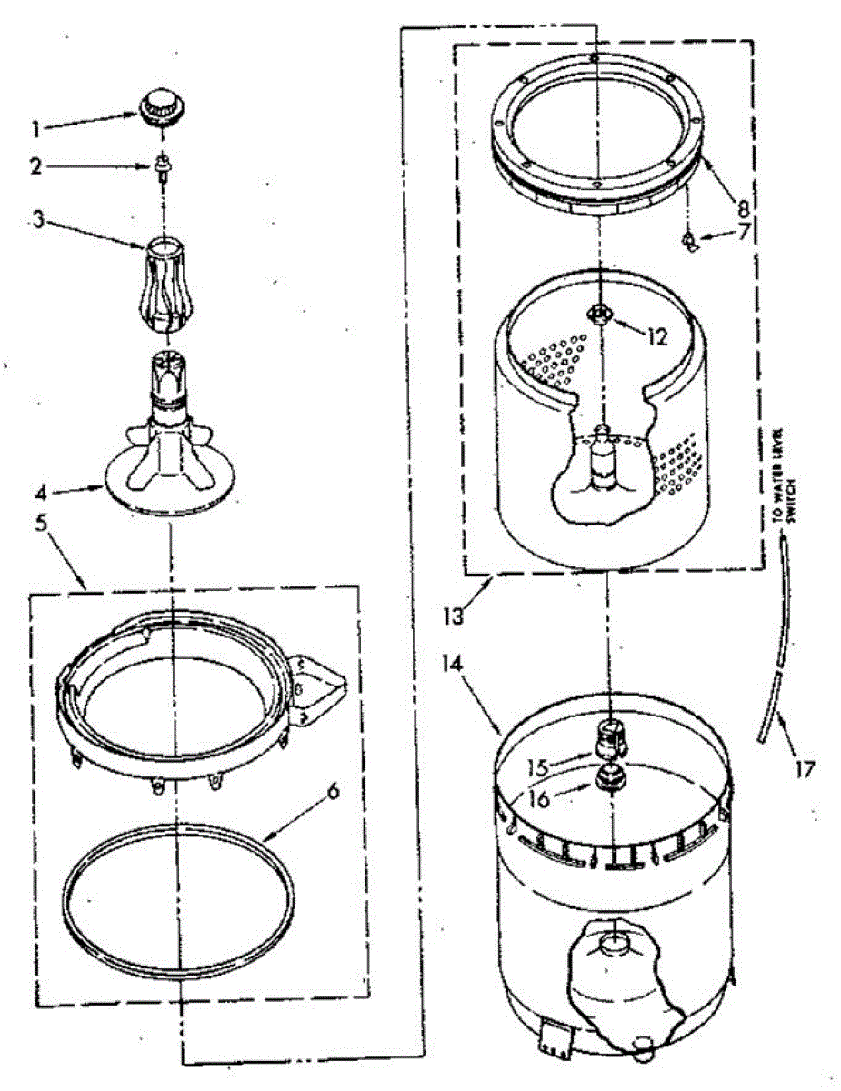 This is a clear plastic hose that runs from the water level switch to the bottom of the tub.
