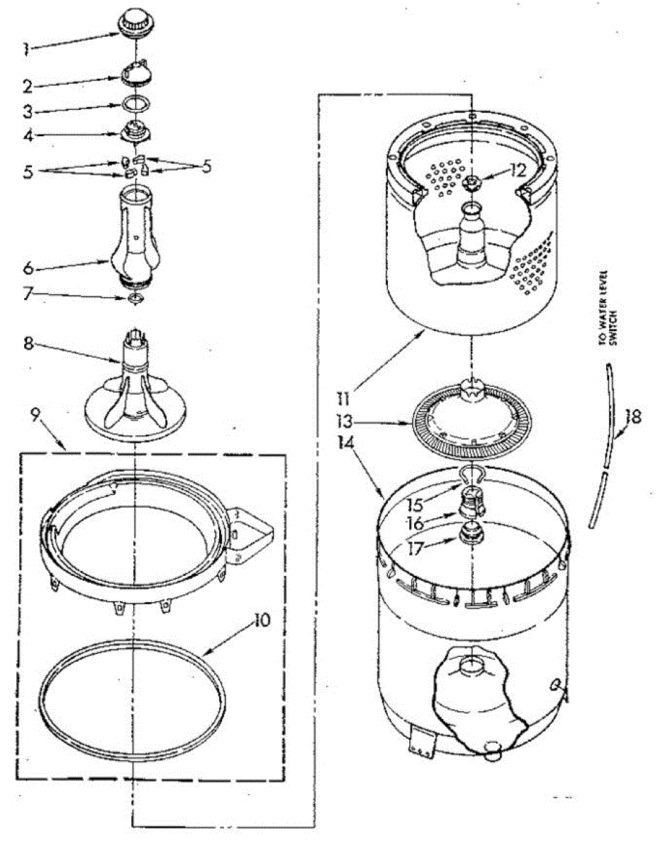 This is a clear plastic hose that runs from the water level switch to the bottom of the tub.