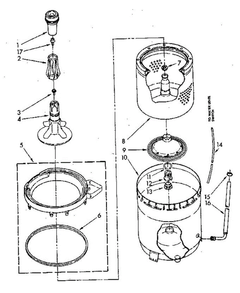 This is a clear plastic hose that runs from the water level switch to the bottom of the tub.