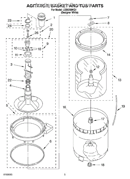 Parts for Whirlpool LSB6200KQ1: 03 - Agitator, Basket And Tub Parts