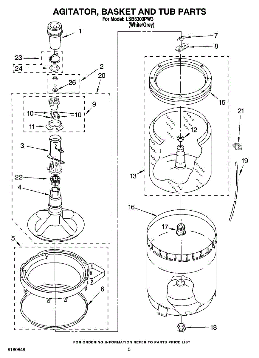 Parts for Whirlpool LSB6300PW3: 03 - Agitator, Basket And Tub Parts