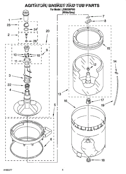 Parts for Whirlpool LSB6500PW0: 03 - Agitator, Basket And Tub Parts