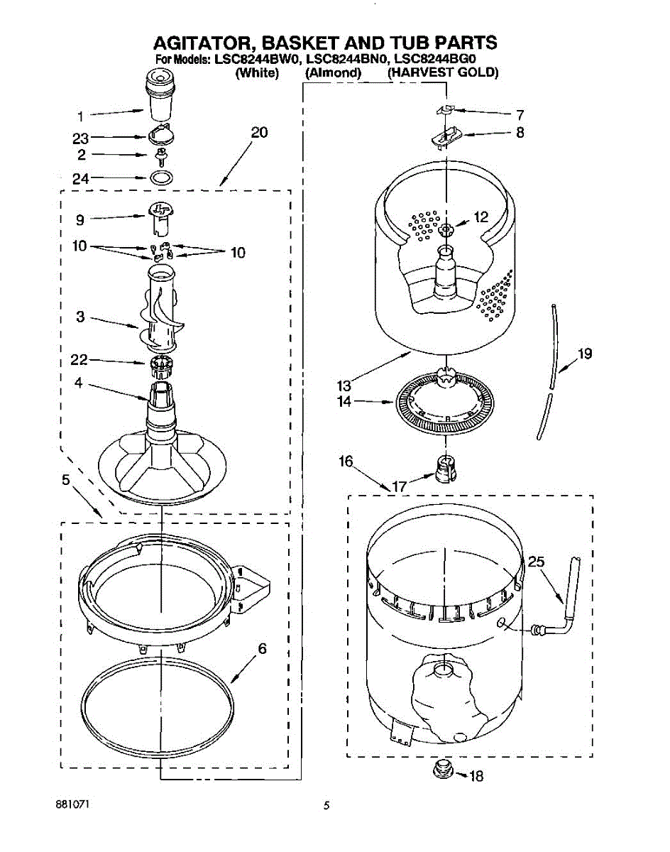 Parts for Whirlpool LSC8244BN0: 04 - Agitator, Basket And Tub Parts