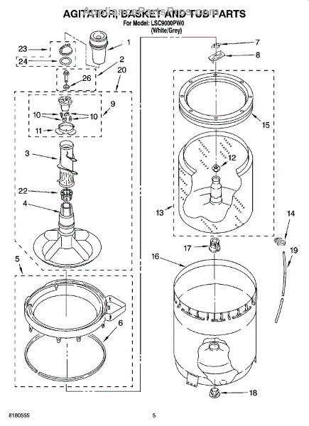 Parts for Whirlpool LSC9000PW0: 03 - Agitator, Basket And Tub Parts