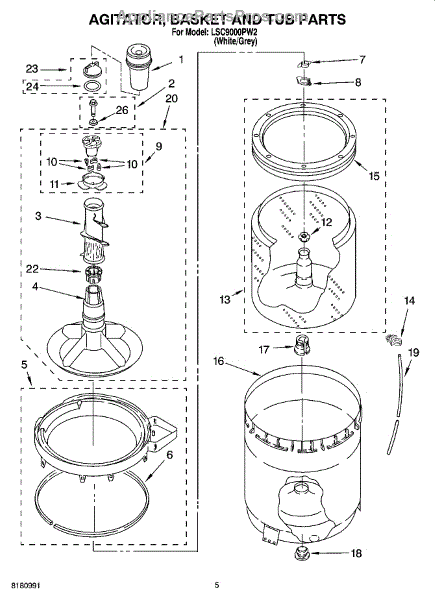 Parts for Whirlpool LSC9000PW2: 03 - Agitator, Basket And Tub Parts