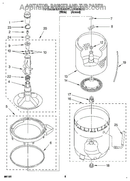 Parts for Whirlpool LSC9245BN1: 04 - Agitator, Basket And Tub Parts
