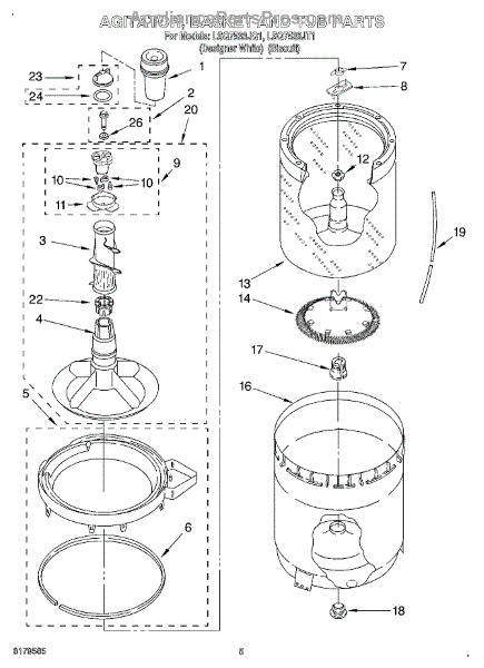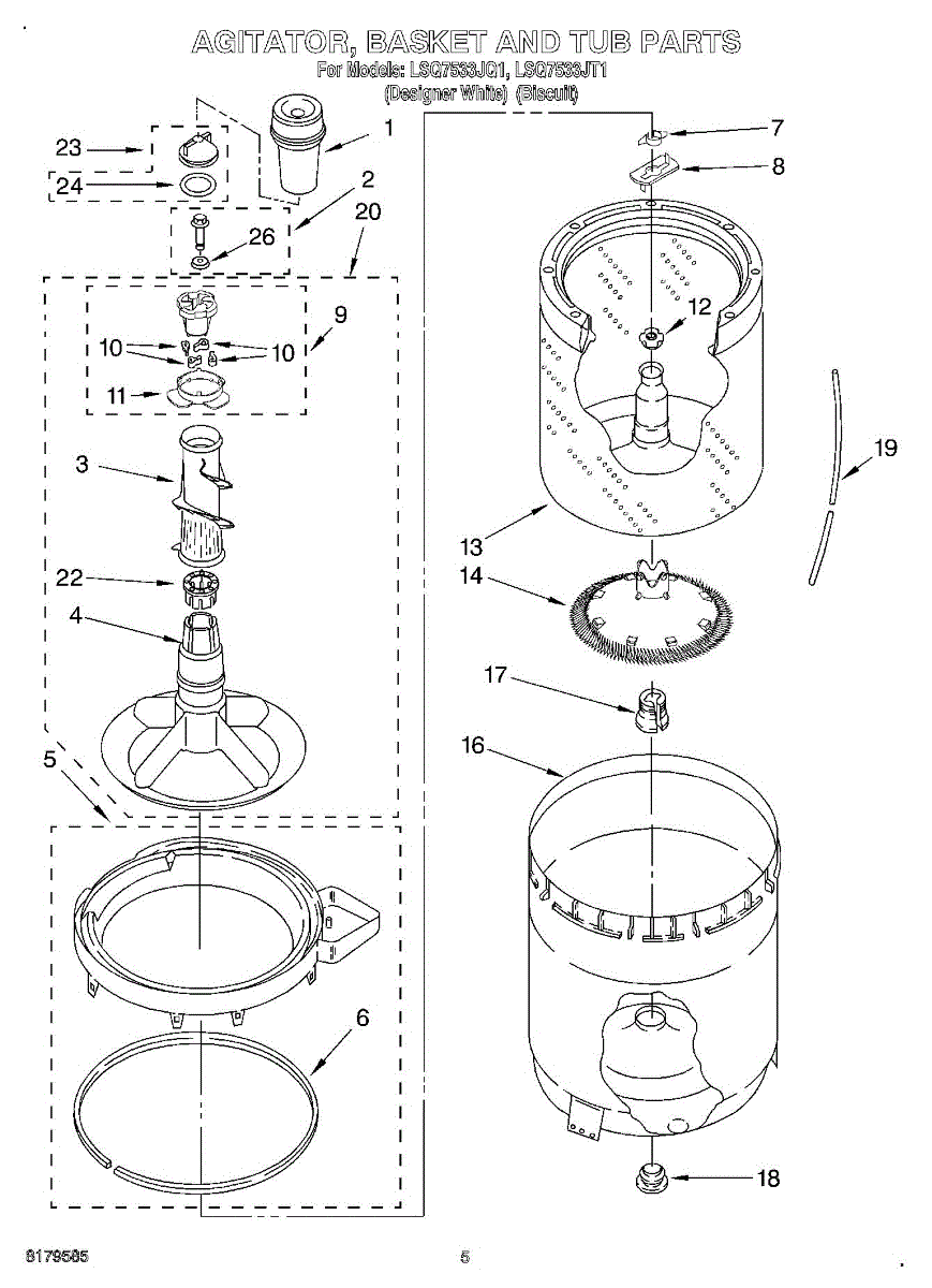 Parts for Whirlpool LSQ7533JT1: 03 - Agitator, Basket And Tub Parts