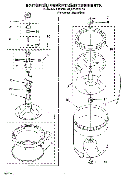 Parts for Whirlpool LSQ9010LG3: 03 - Agitator, Basket And Tub Parts