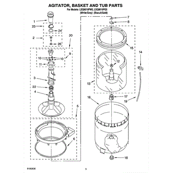 Parts for Whirlpool LSQ9010PW5: 03 - Agitator, Basket And Tub Parts