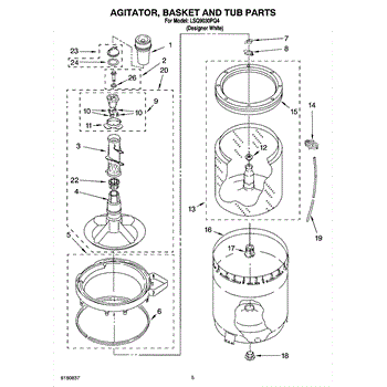Inner tub basket holds clothing during wash cycles. Replace if cracked, rusty, or broken. Installs in center of washer between outer tub and agitator.