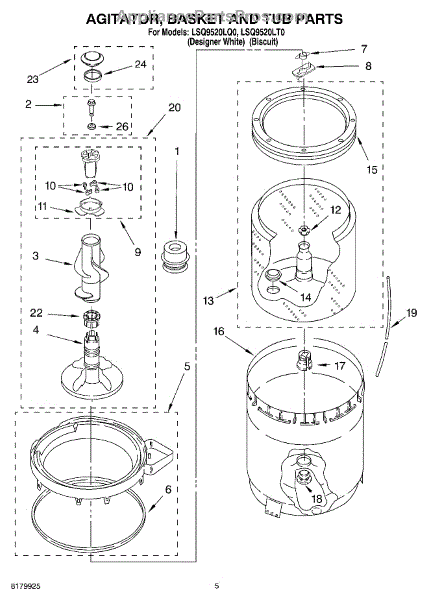 Parts for Whirlpool LSQ9520LQ0: 03 - Agitator, Basket And Tub Parts