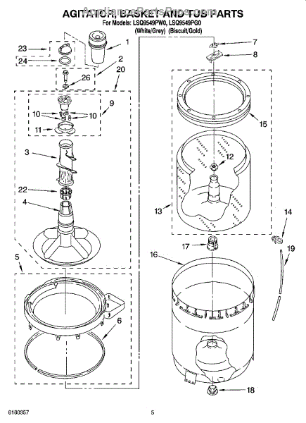 Parts for Whirlpool LSQ9549PG0: 03 - Agitator, Basket And Tub Parts