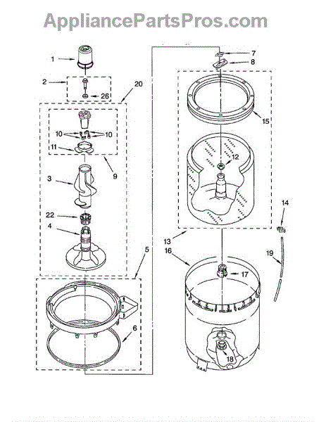 This is an outer tub for washing machines. The outer tub and holds the inner tub and makes sure water doesn't leak into the rest of the appliance. A damaged outer tub will often make loud noises and could cause leaks.When replacing the outer tub, make sure the washing machine is unplugged and the water supply is turned off. Remove the control panel before disassembling the washing machine to get access to the outer tub. Tap the drive block and disconnect the outer tub before pulling the hose free and removing the suspension springs. The new part can be installed in the new place before turning the power and water back on. This outer tub is made for use with washing machines and washer and dryer combination appliances made by Whirlpool, Kenmore, Maytag, KitchenAid, Amana, Magic Chef, Admiral, Roper, Crosley, Inglis, and Estate. This is a genuine OEM replacement part that is directly sourced from the manufacturer. It is sold as a single part.