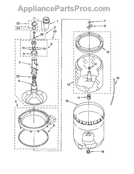 This is an outer tub for washing machines. The outer tub and holds the inner tub and makes sure water doesn't leak into the rest of the appliance. A damaged outer tub will often make loud noises and could cause leaks.When replacing the outer tub, make sure the washing machine is unplugged and the water supply is turned off. Remove the control panel before disassembling the washing machine to get access to the outer tub. Tap the drive block and disconnect the outer tub before pulling the hose free and removing the suspension springs. The new part can be installed in the new place before turning the power and water back on. This outer tub is made for use with washing machines and washer and dryer combination appliances made by Whirlpool, Kenmore, Maytag, KitchenAid, Amana, Magic Chef, Admiral, Roper, Crosley, Inglis, and Estate. This is a genuine OEM replacement part that is directly sourced from the manufacturer. It is sold as a single part.