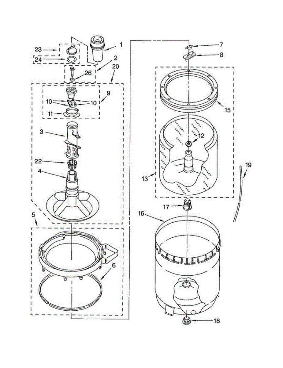 The Complete Agitator Assembly is an OEM part for Whirlpool washing machines. This assembly includes the central vertical agitator component along with the retainer ring. Together they are responsible for the agitation and rubbing motions that work to remove soils and stains from clothing during wash cycles. Causes of a bad agitator assembly can include wear and tear leading to wobbly or loose motions, cracks in plastic components from repeated impacts, or corrosion of metal components. Symptoms of a bad complete agitator assembly include:
