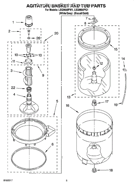 Parts for Whirlpool LSQ9650PW1: 03 - Agitator, Basket And Tub Parts