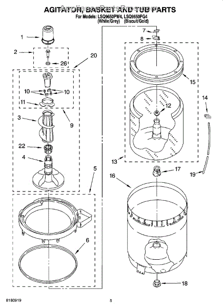 Parts for Whirlpool LSQ9650PW4: 03 - Agitator, Basket And Tub Parts