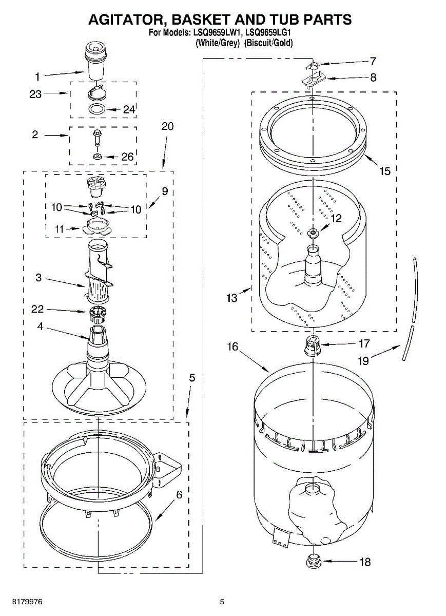 Parts for Whirlpool LSQ9659LW1: 03 - Agitator, Basket And Tub Parts