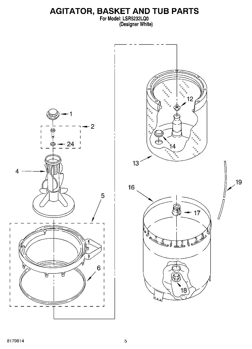 Parts for Whirlpool LSR5232LQ0: 03 - Agitator, Basket And Tub Parts