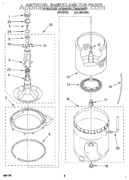 Parts for Whirlpool LSR6233BN1: 04 - Agitator, Basket And Tub Parts