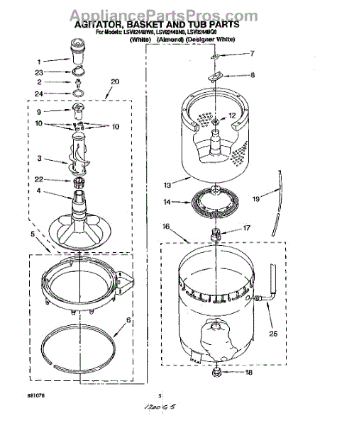 Parts for Whirlpool LSV8244BN0: 04 - Agitator, Basket And Tub Parts