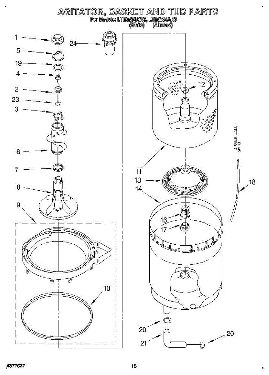 Parts for Whirlpool LTE6234AN3: 10 - Agitator, Basket And Tub Parts