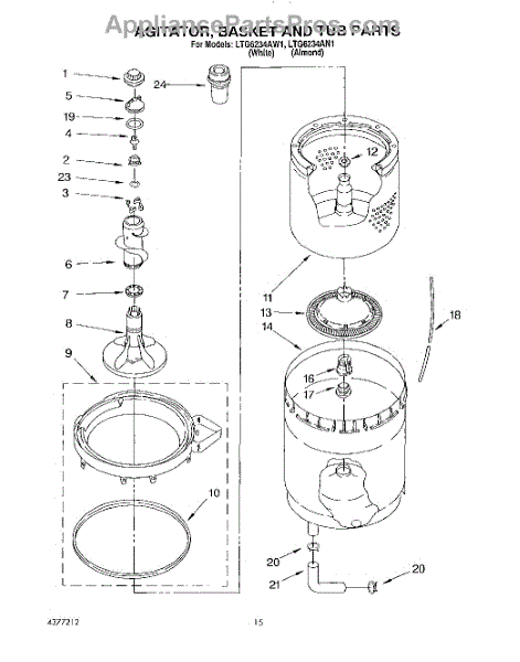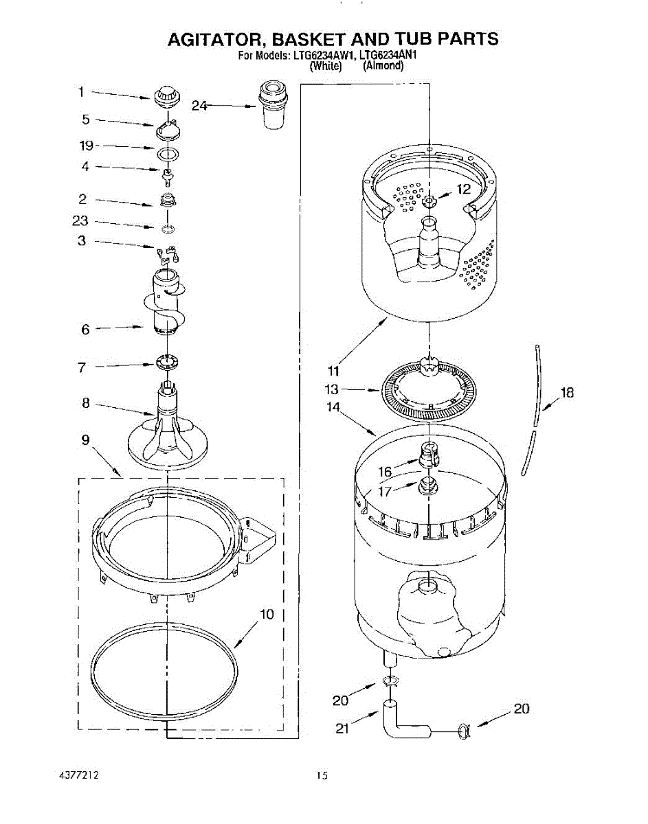 Parts for Whirlpool LTG6234AW1: 10 - Agitator, Basket And Tub Parts