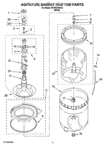 Parts for Whirlpool WTW5790VQ1: 03 - Agitator, Basket And Tub Parts