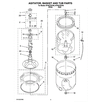 The Complete Agitator Assembly is an OEM part for Whirlpool washing machines. This assembly includes the central vertical agitator component along with the retainer ring. Together they are responsible for the agitation and rubbing motions that work to remove soils and stains from clothing during wash cycles. Causes of a bad agitator assembly can include wear and tear leading to wobbly or loose motions, cracks in plastic components from repeated impacts, or corrosion of metal components. Symptoms of a bad complete agitator assembly include: