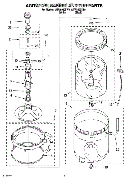 The Complete Agitator Assembly is an OEM part for Whirlpool washing machines. This assembly includes the central vertical agitator component along with the retainer ring. Together they are responsible for the agitation and rubbing motions that work to remove soils and stains from clothing during wash cycles. Causes of a bad agitator assembly can include wear and tear leading to wobbly or loose motions, cracks in plastic components from repeated impacts, or corrosion of metal components. Symptoms of a bad complete agitator assembly include: