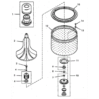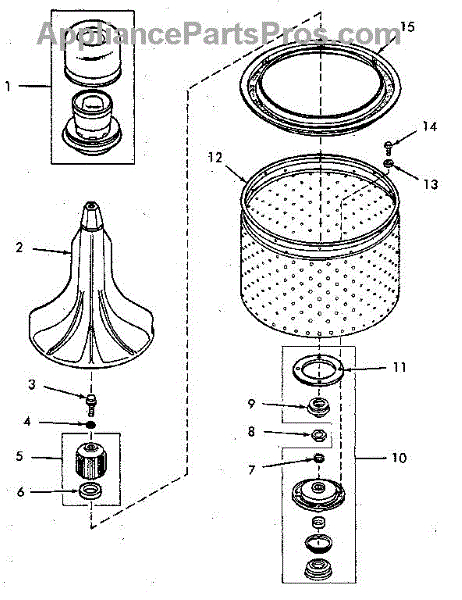 Parts for Speed Queen NA6621L33828: Agitator, Drive Bell, Seal Seat, Lint Filter, Washtub & Hub Parts