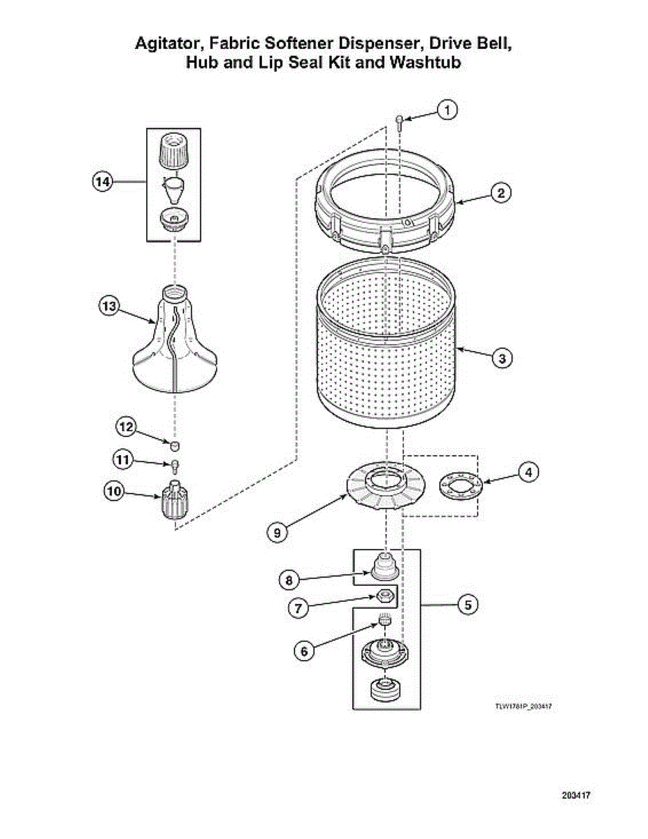 Replace this washer hub and seal kit when you notice water leaking from the center shaft or loud noises during spin cycle. Confirm fit with your model.