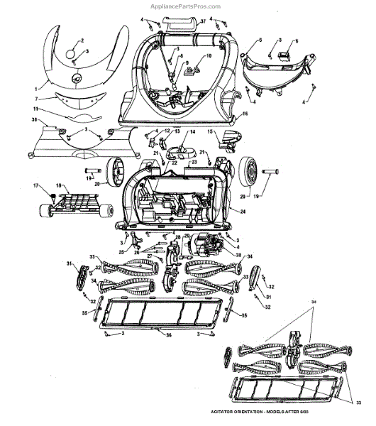 Parts for Hoover U8144-900: Agitator, Mainbody, Hood Parts