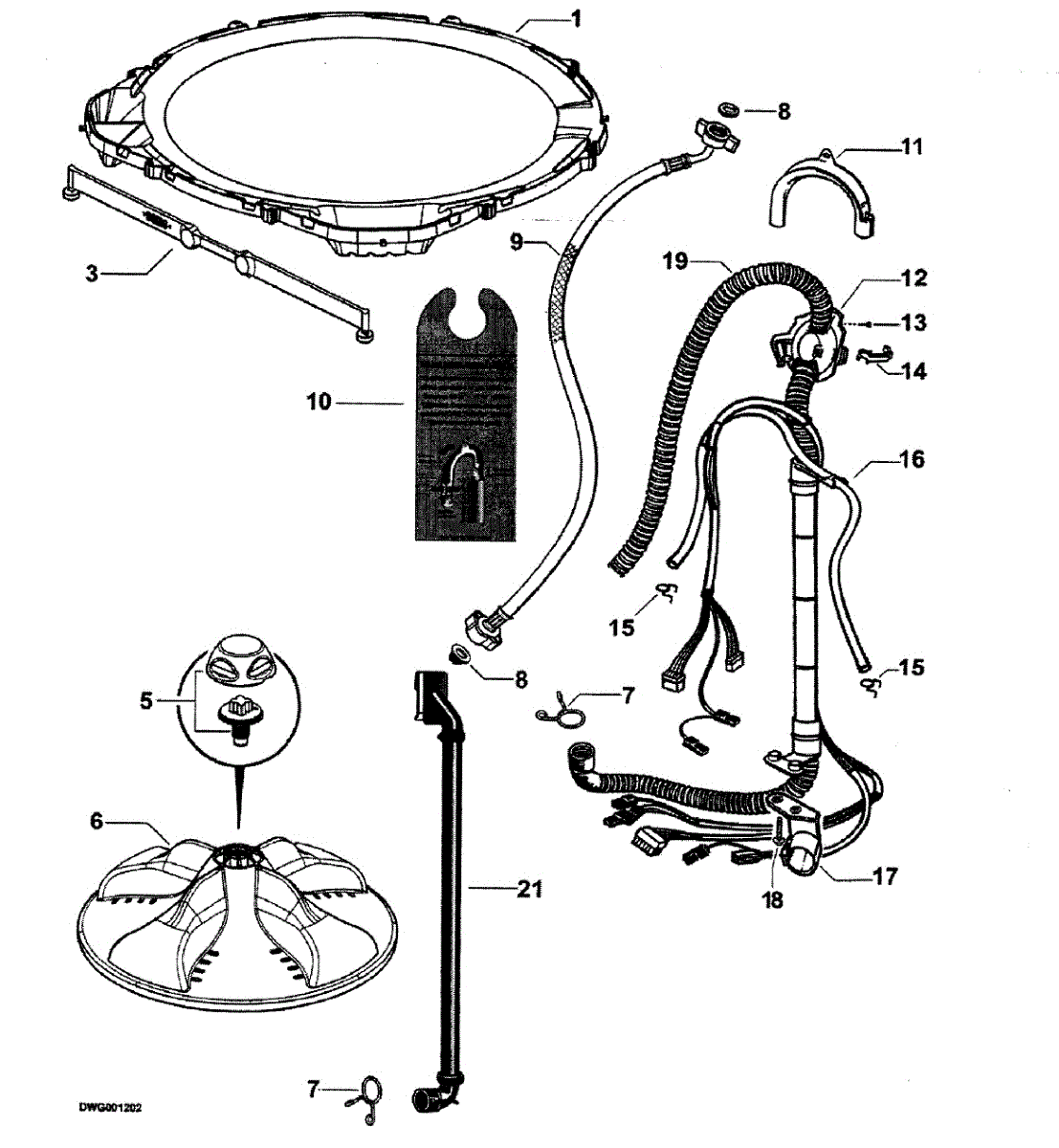 A replacement Miflex-style hose inlet that connects the appliance to the water supply and provides a secure, flexible water entry point. Helps restore proper water flow and prevents leaks from a worn or damaged inlet connection. What it does: