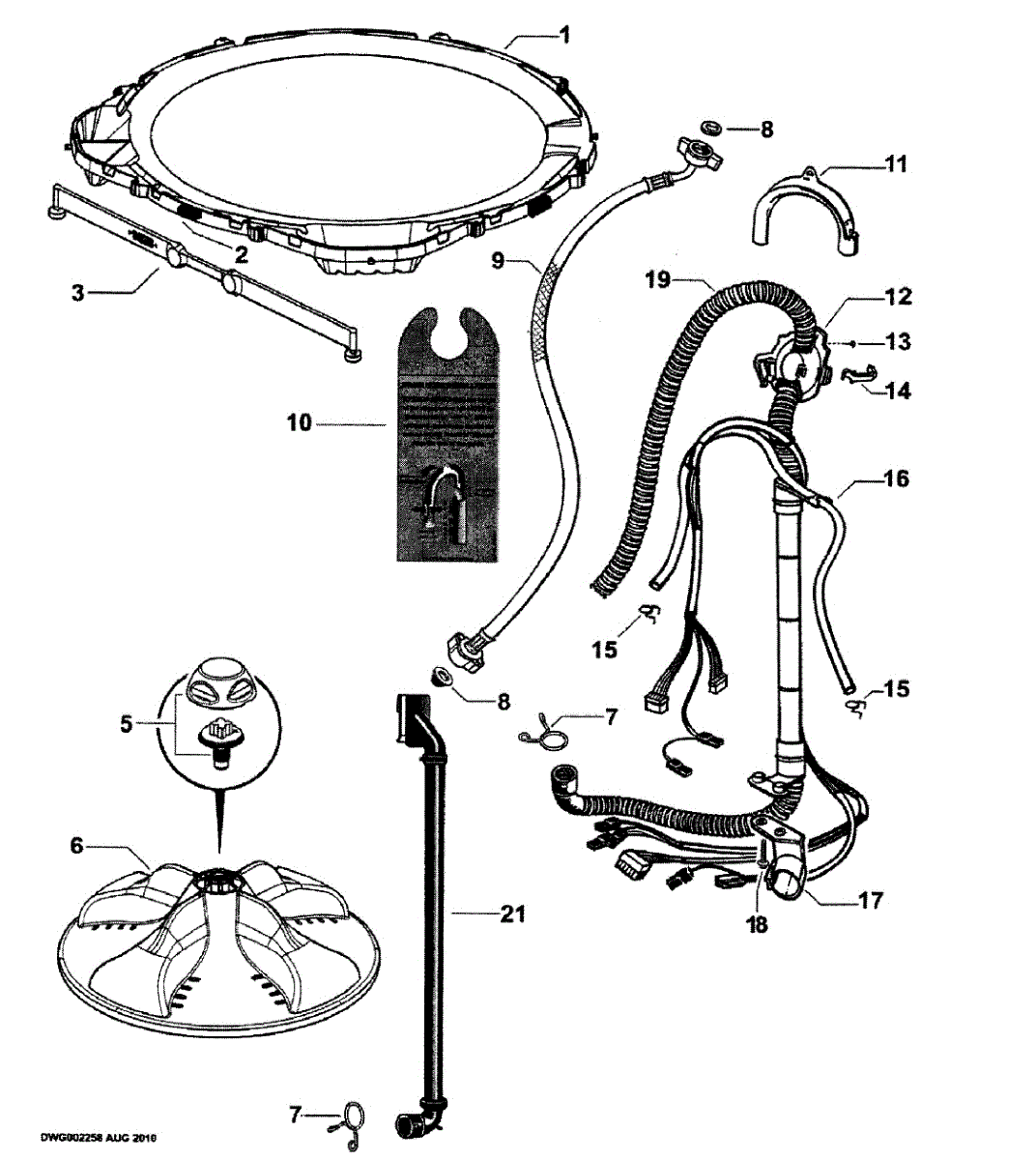 A replacement Miflex-style hose inlet that connects the appliance to the water supply and provides a secure, flexible water entry point. Helps restore proper water flow and prevents leaks from a worn or damaged inlet connection. What it does: