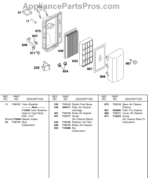 Parts for Briggs & Stratton 115432-0036-01: Air Cleaner Parts