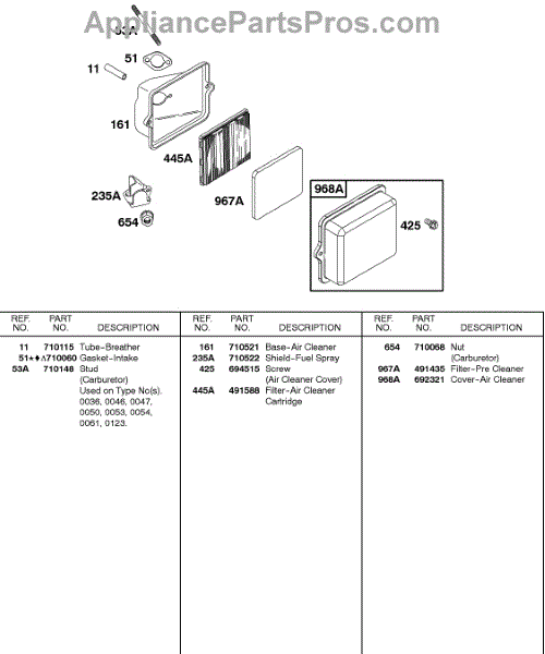 Parts for Briggs & Stratton 115432-0139-01: Air Cleaner Parts