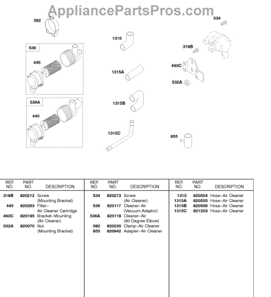 Parts for Briggs & Stratton 58A447-0376-E2: Air Cleaner, Air Cleaner Hose Parts