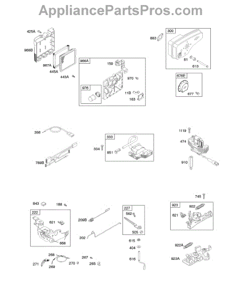 Parts for Briggs & Stratton 120H02-0112-B1: Air Cleaner, Alternator, Controls, Electrical, Exhaust System, Flywheel Brake, Governor Spring, Ignition Parts