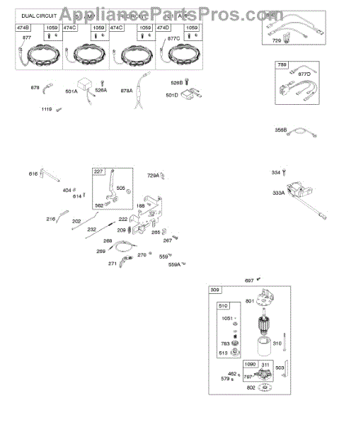 Parts for Briggs & Stratton 331877-0114-G2: Air Cleaner, Alternator, Controls, Electric Starter, Governor Spring, Ignition Parts