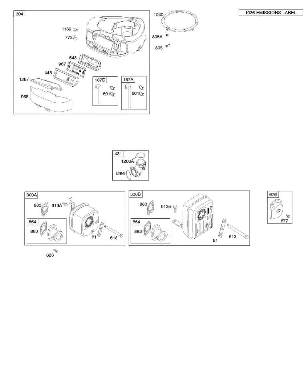 Parts for Briggs & Stratton 21A807-0166-B1: Air Cleaner, Blower Housing, Exhaust System Parts